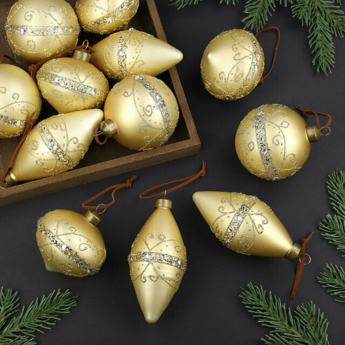 Набор стеклянных шаров и украшений конжеле, 8-9 см, 12 шт, Winter Deco 19039-23323