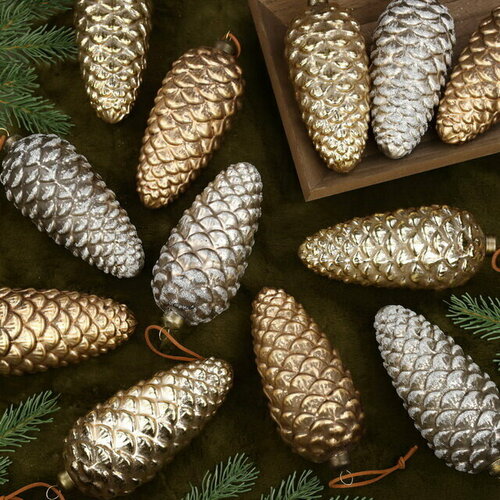 Winter Deco Набор стеклянных елочных игрушек Шишки Амадео 15 см, 12 шт, подвеска 19039-23042