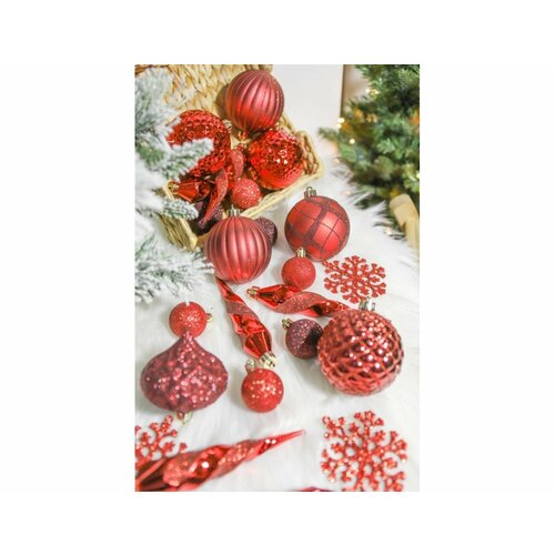 Набор елочных шаров и украшений зимние сокровища, пластик, красный с бордовым, 4-15 см, упаковка 50 шт, Winter Deco 220011