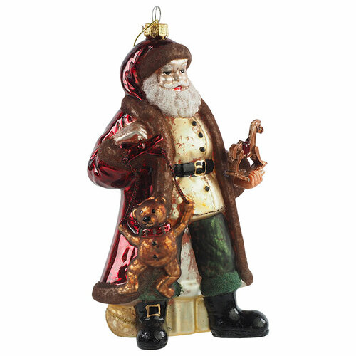 Winter Deco Стеклянная елочная игрушка Санта с мишкой - Retro Classic 19 см, подвеска 121569