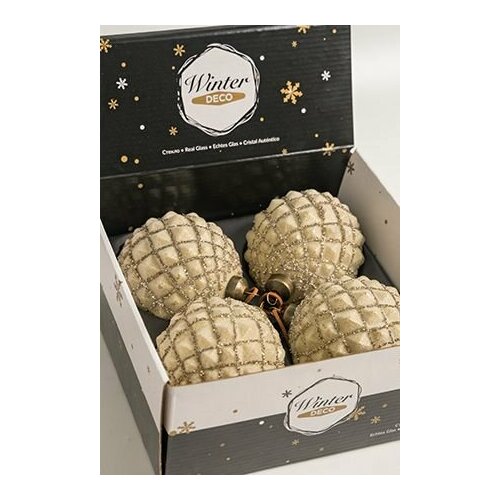 Набор стеклянных шаров эшель крем, кремовый, 10 см, 4 шт, Winter Deco 19039-23047