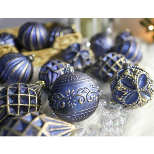 Набор пластиковых шаров бэль вэстито, пластик, синий с золотым, 8 см, упаковка 16 шт, Winter Deco 220023
