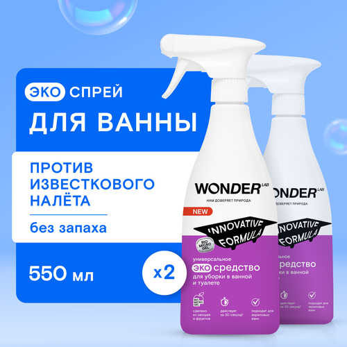 Набор чистящее средство для уборки в ванной и туалете WONDER LAB, эко спрей для сантехники, без хлора и резкого запаха, 550 мл, 2 шт