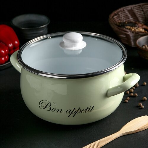 Кастрюля «Лайм», 5,1 л, стеклянная крышка, индукция, цвет светло-зелёный