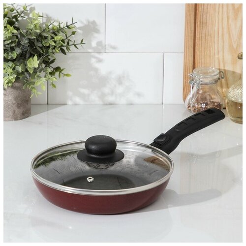 Сковорода «Альфа», d=20 см, съёмная ручка, стеклянная крышка, антипригарное покрытие, цвет бордовый