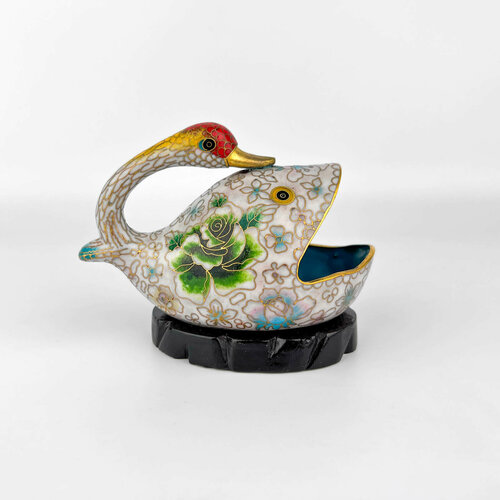 Шкатулка для украшений "Лебедь-кит". Китай, эмаль клуазоне, 1950-1980 гг.