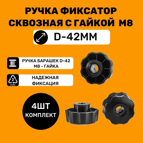 Ручка-фиксатор сквозная барашек с гайкой M8 и основанием d-42 мм (4шт)