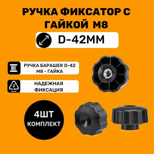 Ручка-фиксатор барашек с гайкой M8 и основанием d-42 мм (4шт)