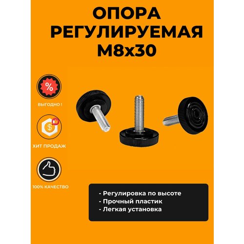 Опора регулируемая резьбовая M8x30 / опора ножка мебельная винтовая d-32мм (12 шт.)