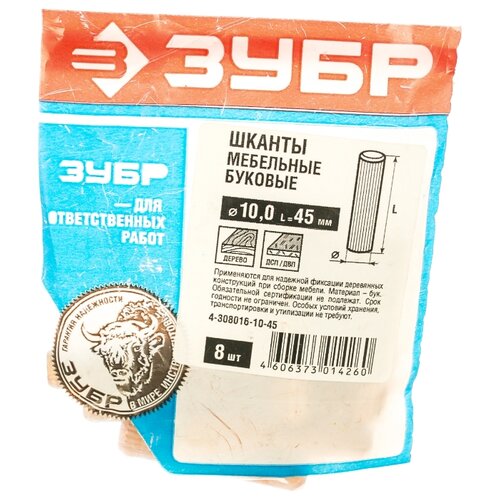 Шканты мебельные буковые 8 шт. (10x45 мм) Зубр 4-308016-10-45 13671383