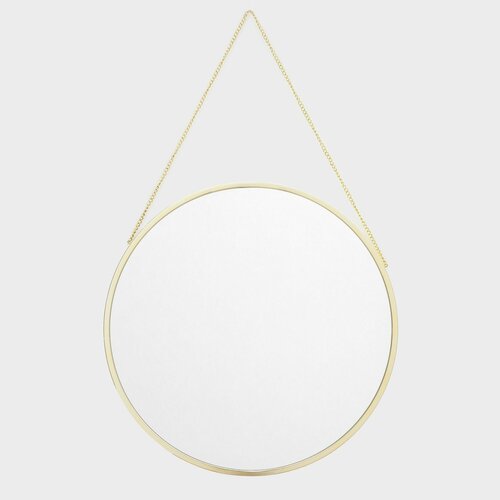 Зеркало подвесное, 45 см, на цепочке, пластик/металл, круглое, золотистое, Freya