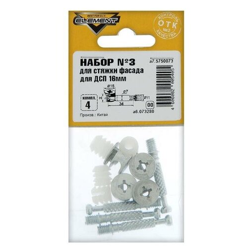 Набор №1 для стяжки фасада для ДСП Element, 16 мм, на блистере, 4 комплекта./В упаковке шт: 1