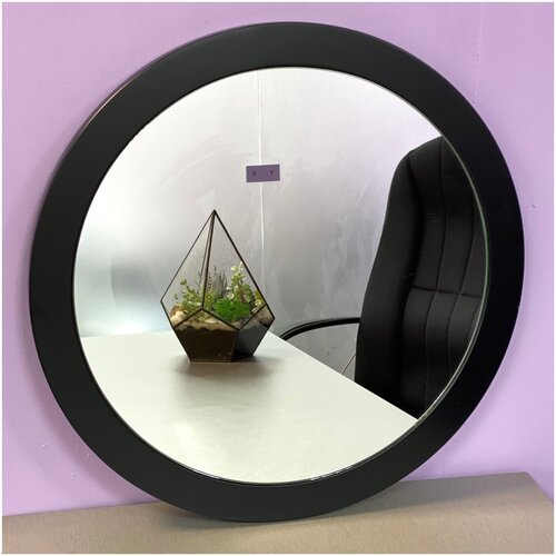 Настенное зеркало в черной круглой раме 50 см