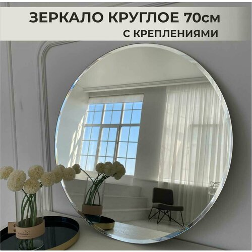 Зеркало круглое 70 см с фацетом, зеркало для ванной, зеркало настенное, зеркало в прихожую, зеркало интерьерное для спальни