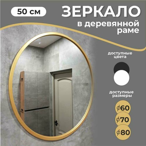Зеркало настенное круглое 50 см в золотой деревянной раме