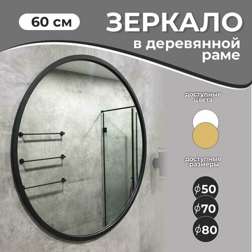 Зеркало настенное круглое 60 см в белой деревянной раме - стильное и функциональное решение для вашего интерьера.