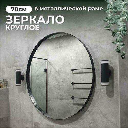 Зеркало настенное круглое в черной металлической раме 70 см, зеркало в ванную, зеркало интерьерное, зеркало лофт loft