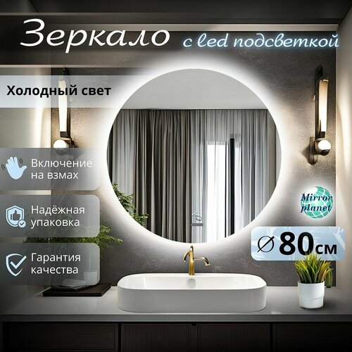 Зеркало для ванной с подсветкой круглое настенное с сенсорным управлением регулировкой яркости 6000К холодный свет диаметр 80 см на взмах