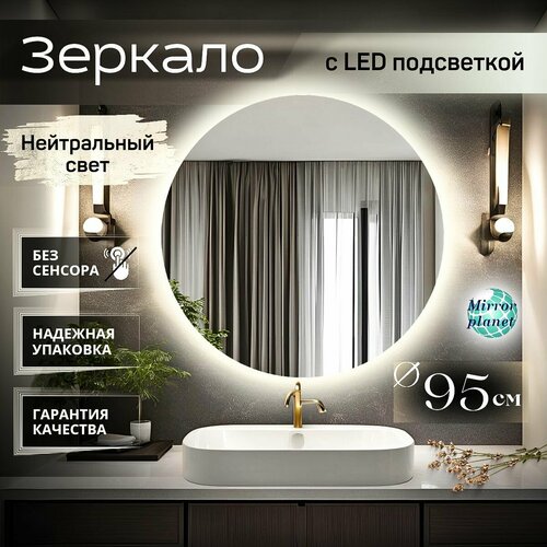 Зеркало для ванной с подсветкой круглое настенное без сенсора 4500К нейтральный свет диаметр 95 см