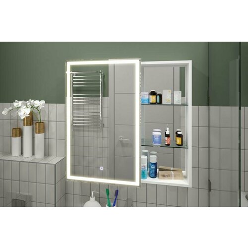Зеркало шкаф (левый) с подсветкой в ванную KVVgroup Sky 60х80 с сенсорным управлением и полками