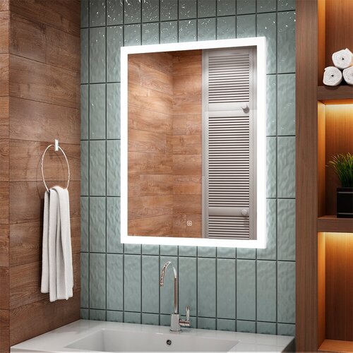 Зеркало "Torry Led" с фоновой подсветкой, бесконтактным сенсором, черной окантовкой 500х700