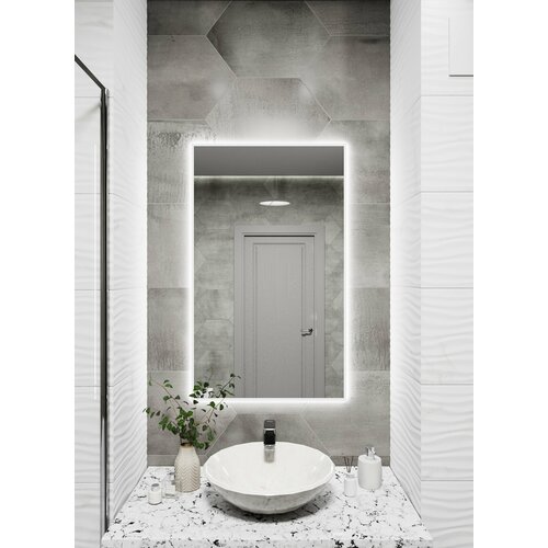 Зеркало с подсветкой в алюминиевой раме, настенное, ONE MIRROR, 100х60 см. Белое. Свет: Теплый белый 3000К