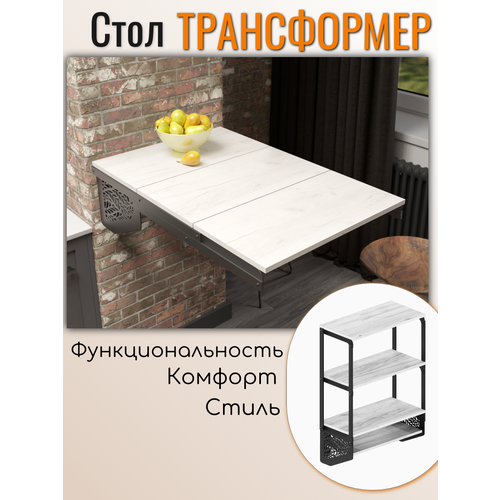 Стол-трансформер для кухни и кабинета с полками и металлической основой. Стол-трансформер Prostolloft "Дуб Крафт белый", стол-стеллаж Loft