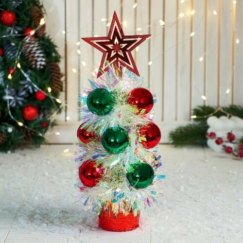 Зимнее волшебство Ёлка декор "Праздничная" перламутр, 10х26 см, красно-зелёный