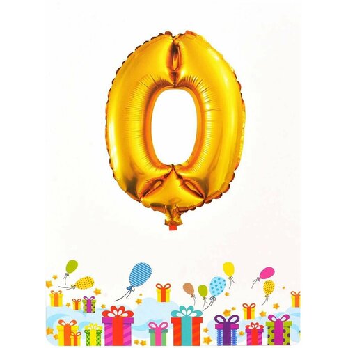 Воздушный шар - цифра 0, с трубочкой, цвет золотой, 106 см, фольгированный, 1 шт