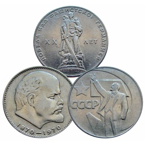 Набор 3 монеты 1 рубль 1965-1970 СССР Ленин 20 лет победы