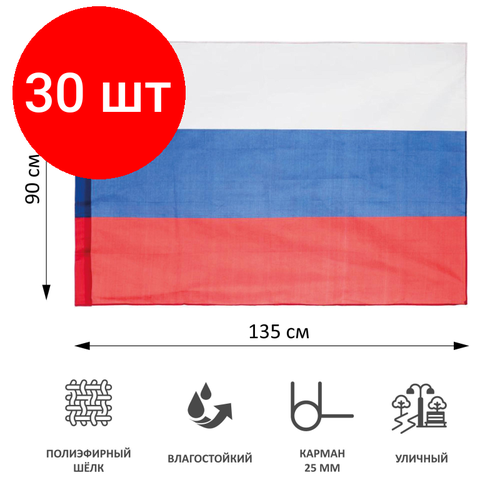 Комплект 30 штук, Флаг РФ 90x135см полеэфирный шелк влагостойкой пропиткой уличный 70 мг