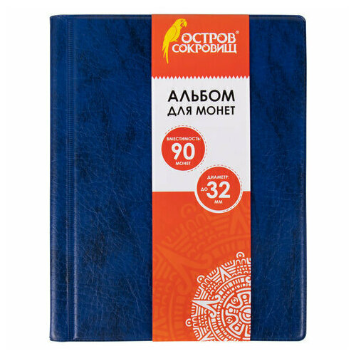 Альбом нумизмата для 90 монет (диаметр до 32 мм), 145х185 мм, остров сокровищ, 237958 (арт. 237958)