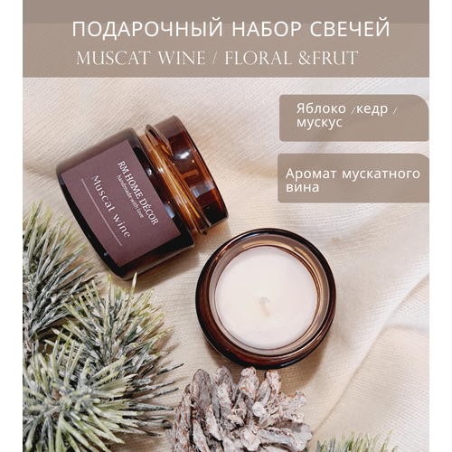 Подарочный набор, ароматических свечей MUSCAT WINE 100мл, набор свечей, подарок для женщины, 8 марта