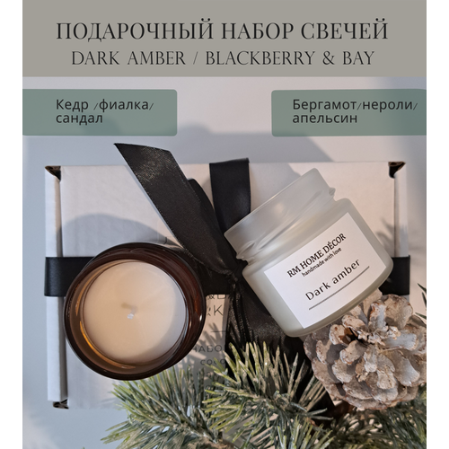 Ароматические свечи подарочный набор, BLACKBERRY & BAY/ DARK AMBER/ 100мл, набор свечей, 2шт, подарок женщинам черный
