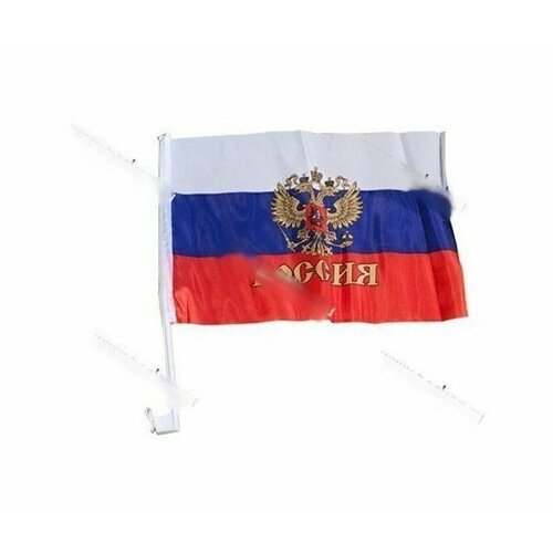 Флаг Россия с гербом 40х60см с флагштоком 12шт/уп полиэф. шелк пласт 109492