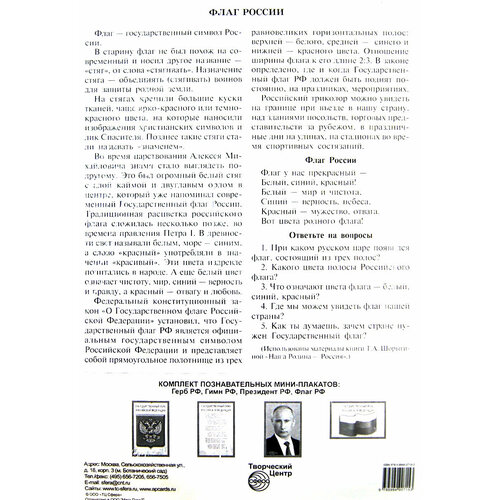 Комплект познавательных мини-плакатов с российской символикой: Флаг, герб, гимн, президент (А4)