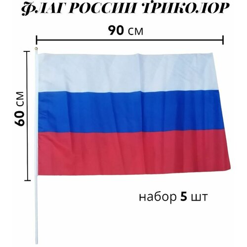 Флаг России Триколор на флагштоке 60*90 комплект 5шт