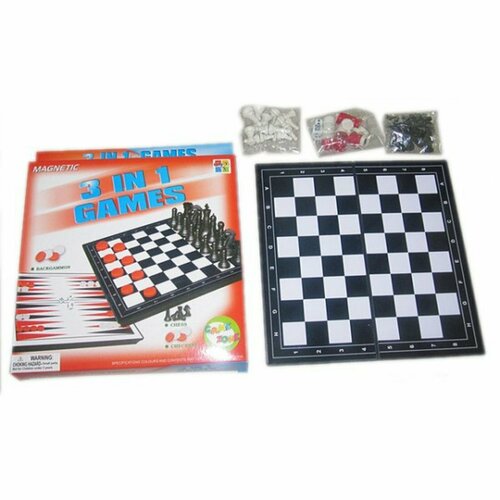 Классическиенастольные игры — прекрасное интеллектуальное хобби! В процессе игрыразвивается логическое и стратегическое мышление, память, внимание, способностьанализировать. Комплектнастольной игры 3 в 1 сочетает в себе шахматы и шашки с нардами. Размеригрового поля: 39х39 см. Материализготовления: пластмасса. Рекомендованныйвозраст: 6 лет +