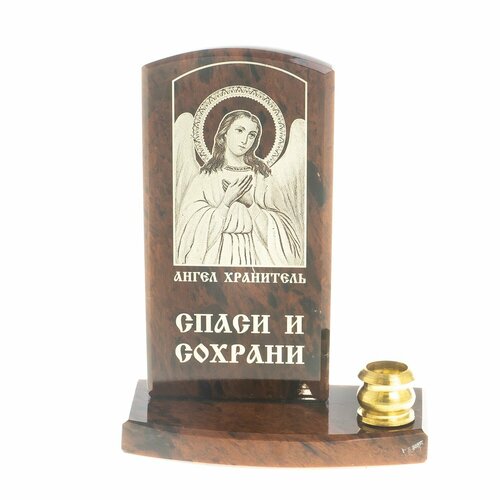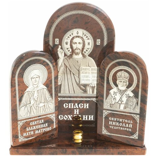 Икона триптих "Спаситель, Матрона, Николай" камень обсидиан 122910 коричневый, темный, коричневый