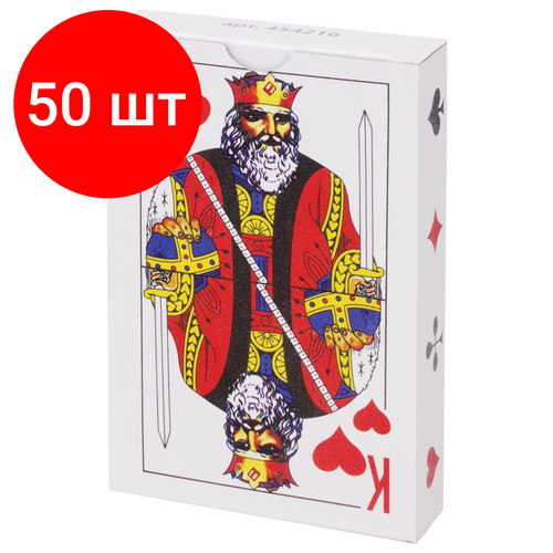 Комплект 50 шт, Карты игральные, 54 карты, с пластиковым покрытием, 454216