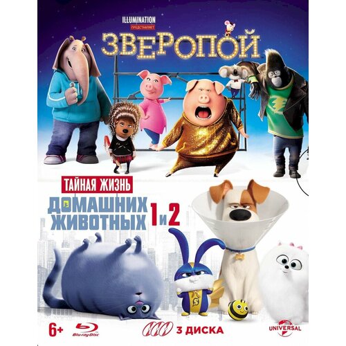Тайная жизнь домашних животных 1, 2, Зверопой. Коллекция м/ф «Illumination» (Blu-ray) 3 BD + карточки