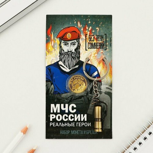 Набор монета и брелок «МЧС России», 8 х 14 см (комплект из 7 шт)