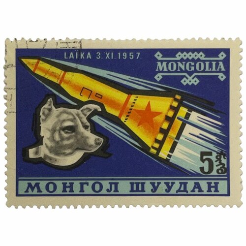 Почтовая марка Монголия 5 мунгу 1963 г. Лайка. Серия: Космическое путешествие (10)