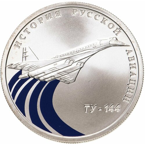 Серебряная монета 1 рубль 925 пробы (8.53) в капсуле ТУ- 144. История русской авиации. Россия СПМД 2011 Proof