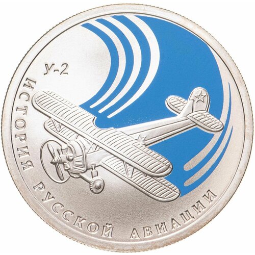 Серебряная монета 1 рубль 925 пробы (8.53) в капсуле У- 2. История русской авиации. Россия СПМД 2011 Proof