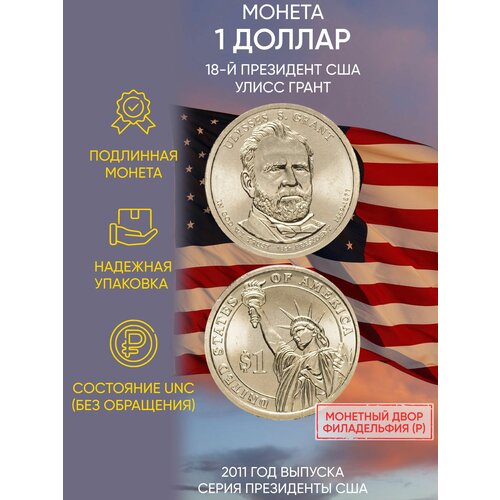Монета 1 доллар Улисс Грант. Президенты. США. Р, 2011 г. в. Состояние UNC (из мешка)