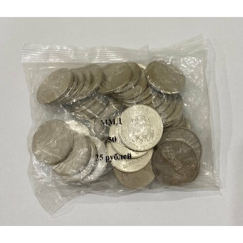 Монеты 50шт 25 рублей 2018 Эмблема Чемпионат мира по футболу FIFA 2018 Состояние UNC