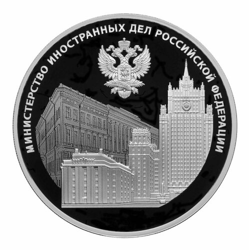 Серебряная монета 925 пробы (31.1 г) 3 рубля в капсуле Министерство иностранных дел. СПМД 2022 Proof