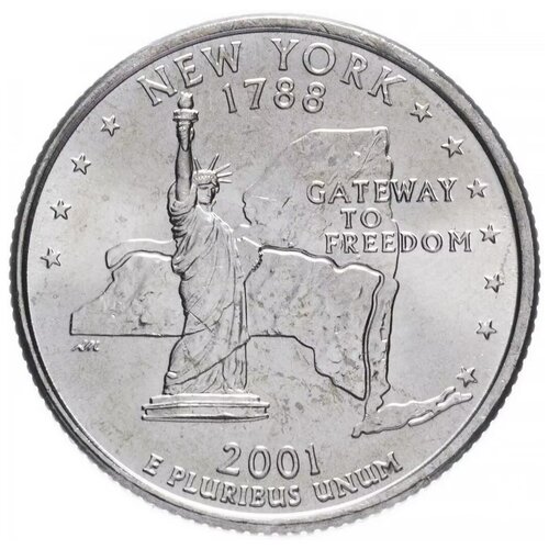 Памятная монета 25 центов (квотер, 1/4 доллара). Штаты и территории. Нью Йорк. США, 2001 г. в. Монета в состоянии UNC (без обращения)