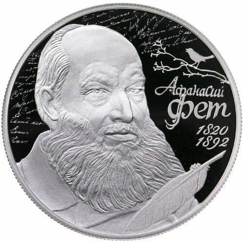 Серебряная монета 2 рубля в капсуле (15.55 г) 200 лет А. А. Фету. СПМД 2020 Proof